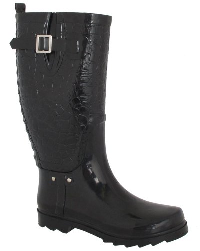 CHECK LOWEST PRICES Capelli New York Matte Embossed Small Croco With Buckle Ladies Rain Boot Jet Black 10